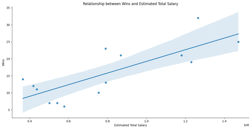 The regression analysis conducted in this study provides compelling evidence of a statistically significant positive relationship between a team’s estimated total salary and its performance, as measured by wins and goals scored. The findings highlight the potential impact of financial investment in talent on team success. However, the study’s limitations, including its small sample size and the model’s assumptions, underscore the need for cautious interpretation. Future research with larger datasets and considering non-linear relationships could offer deeper insights into the intricate dynamics between salary and team performance. To look at six seasons, read our article Higher Salary Budget Equate to Better Performance.