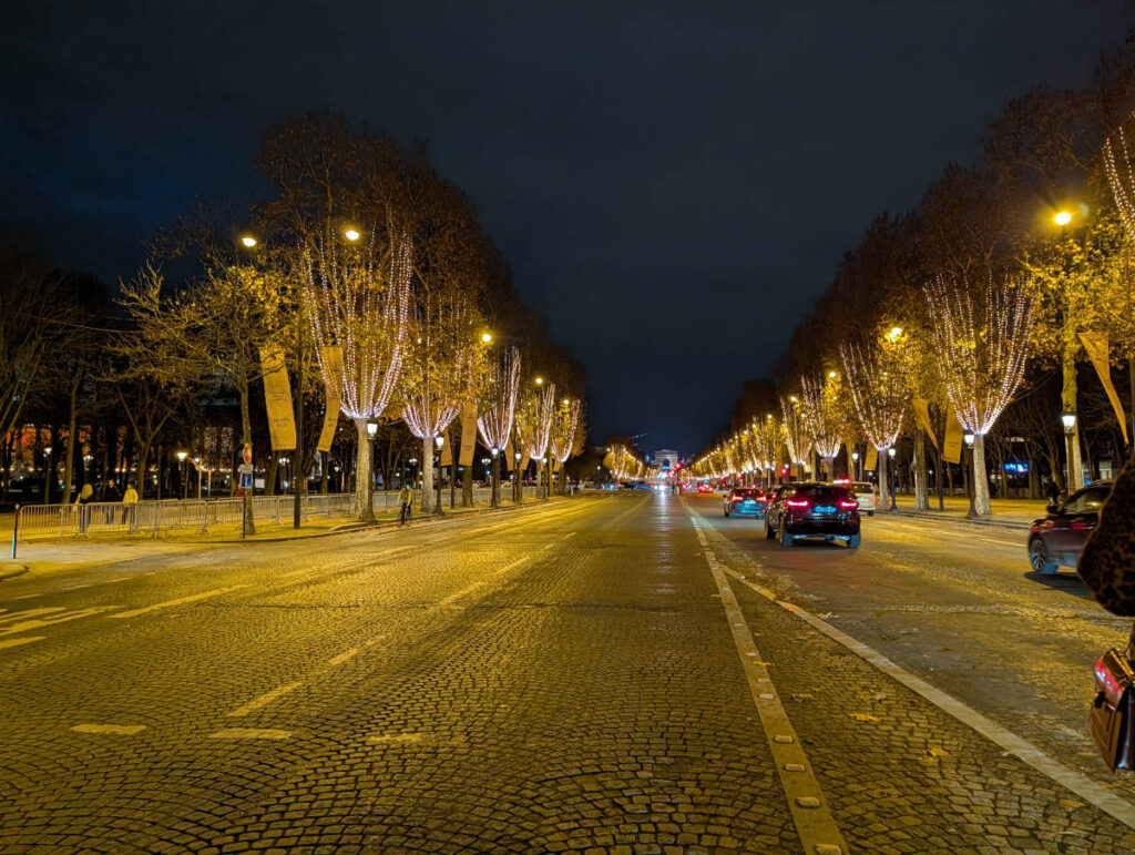 Evening: Marché de Noël des Champs-Élysées and a walk along Avenue de Friedland. We wrapped up with a stop at the Arc de Triomphe and walked back along the Champs-Élysées.