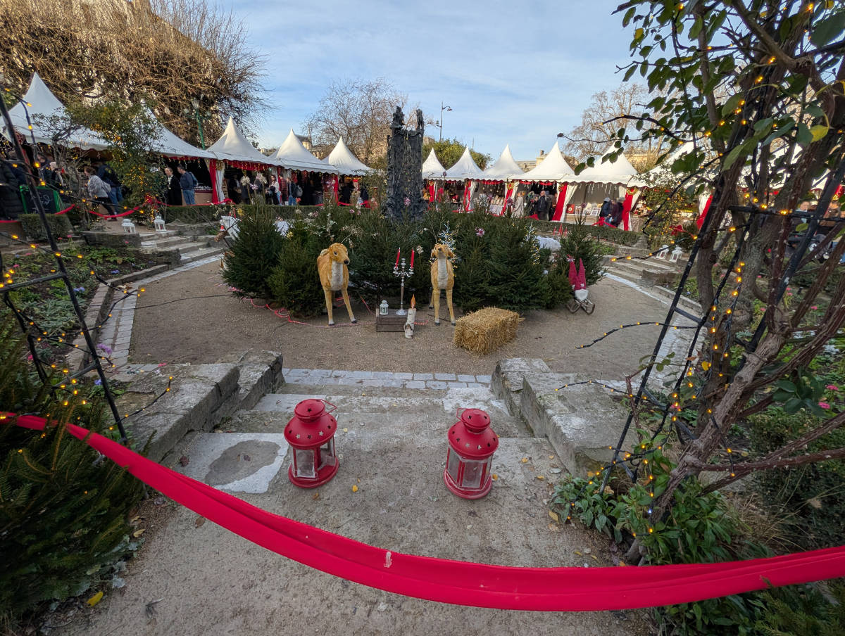 After checking back into Hotel du Cadran, we headed to the Marché de Noël des Tuileries — the biggest Christmas market in Paris, set up right next to the Louvre in the Tuileries Garden. It felt more like a county fair in the United States than a Christmas Market. It didn’t have the same fairytale charm of the previous markets.