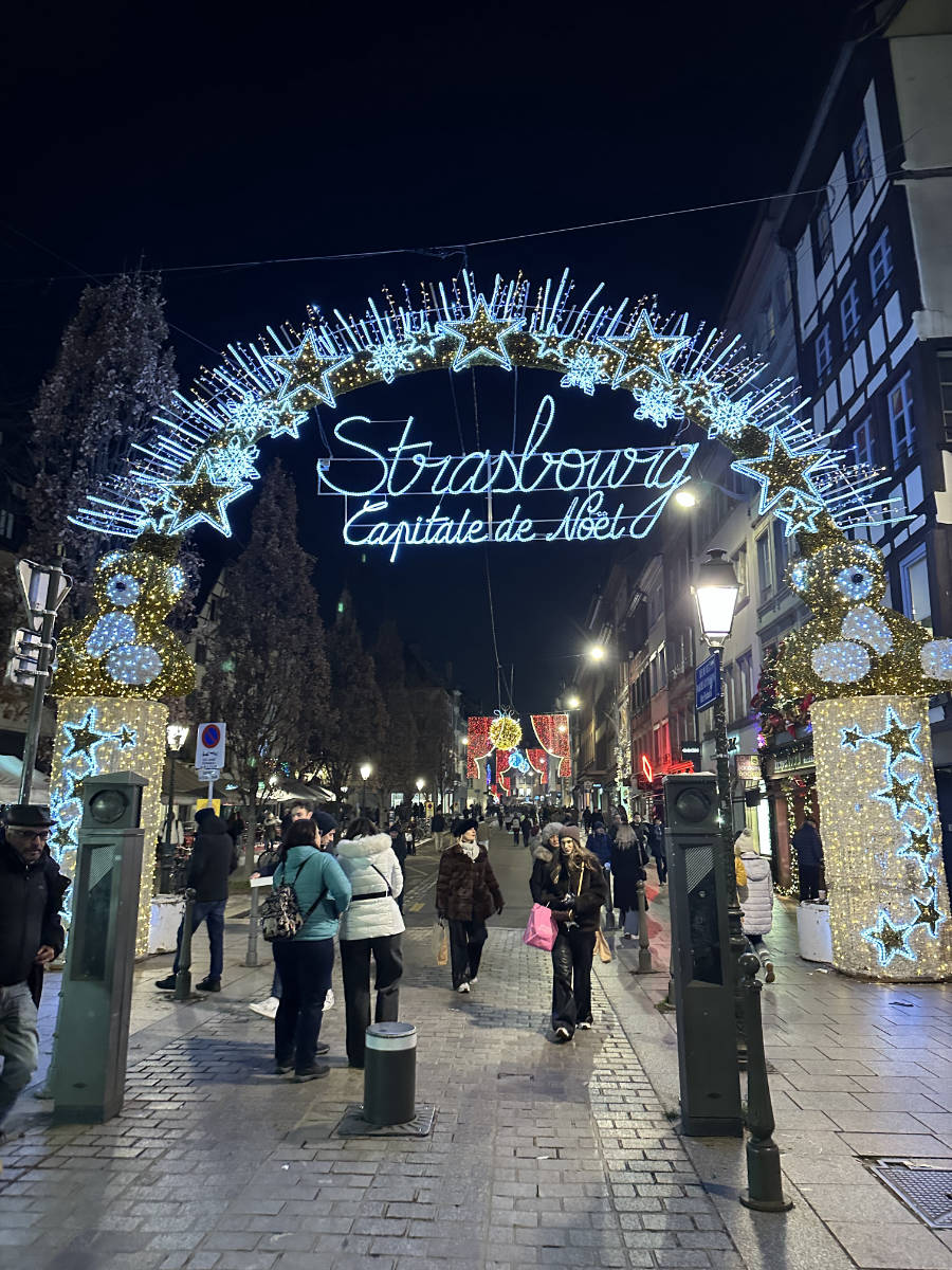 We spent the rest of the night walking through the markets after dark. Place Kléber lit up, the cathedral glowing, Rue des Orfèvres packed with wooden stalls — it was the first moment the trip went from “cool vacation” to something genuinely special.